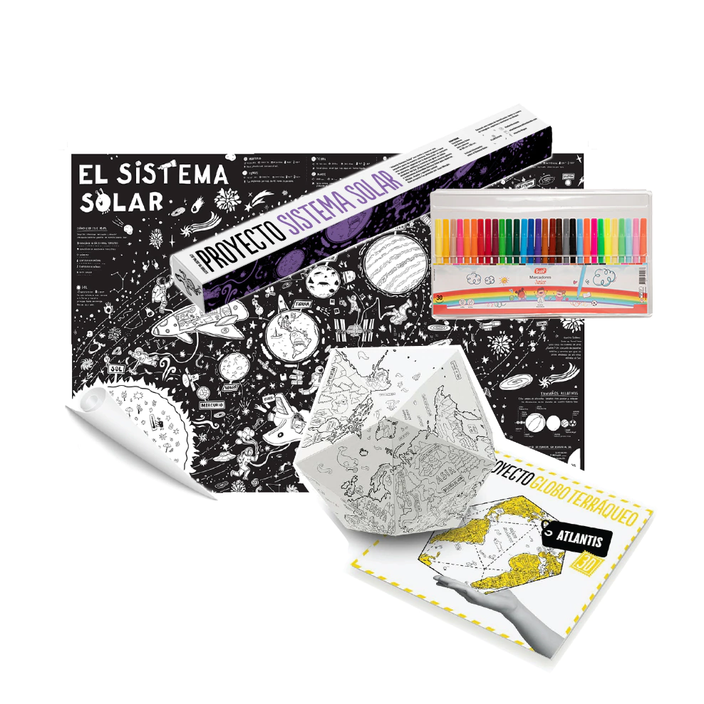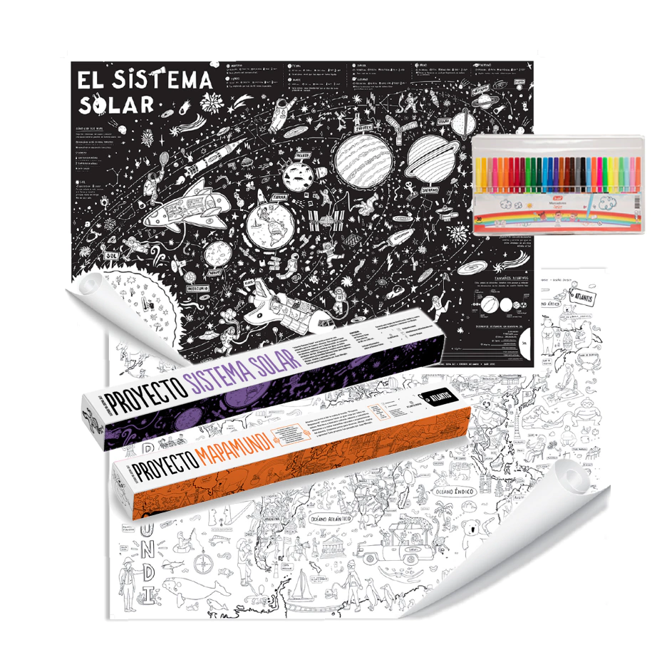 El Proyecto Sistema Solar es una lámina gigante en blanco y negro para colorear, con todos los planetas e información de cada uno de ellos en un viaje intergaláctico de color y diversión!