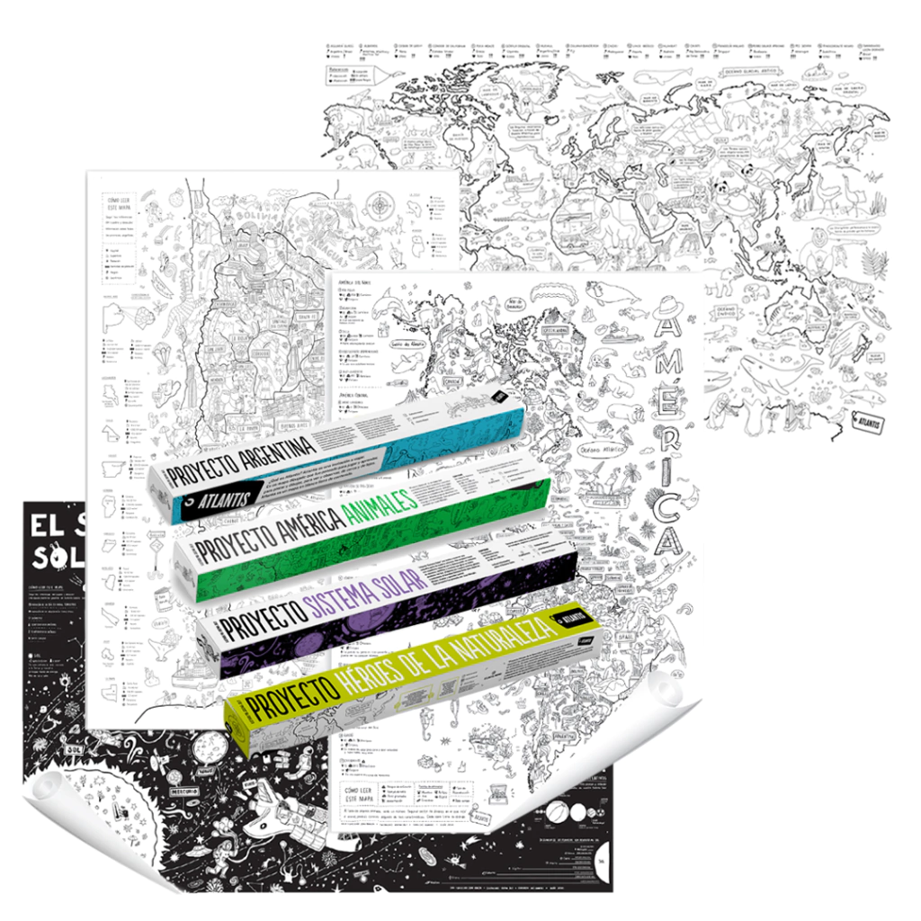 Como siempre Atlantis pretende reunir a la familia o a los amigos alrededor del mapa, y comenzar a ¡pintar, conversar y aprender!